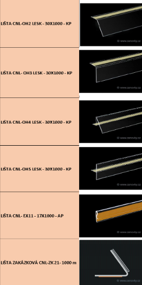 | Typ | CNL- OH2 LESK – 30×1000 – KP, CNL – OH3 LESK – 30×1000 – KP, CNL – OH4 LESK 30×1000 – KP, CNL – OH5 LESK 30×1000 – KP, CNL – EX11 17×1000 – AP, ZAKÁZKOVÁ CNL – ZK 21×1000 m |